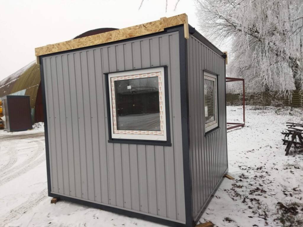 Kaina€3267.00 su PVMIšorės matmenys:3×2.35×2.4 (ilgis x plotis x aukštis)Išorės apsiuvimas:Dengtas profiliuota cinkuota skarda 0,45mm pilkos ral 7004 spalvos (stogas, sienos) Dugno apsauga, cinkuota profiliuota skardaApšiltinimas:100mm mineralinė vata (sienos,lubos, grindys)Grindys:18 mm osb plokštė, PVC danga ne plonesnė nei 2mmSienos:MDF panelės apdaila, medžio imitacija su raštu.Lubos:PVC lentelės baltosKita:2 balti varstomi langai. Durys.El. instaliacija:Šviestuvai, rozetės, jungikliaiShare