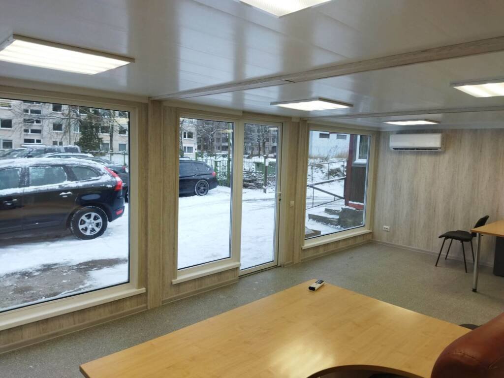 Kaina€14399.00 su PVMIšorės matmenys:7.05x4x2.5 (ilgis x plotis x aukštis)Išorės apsiuvimas:Dengtas profiliuota cinkuota skarda 0,45mm pilkos ral 7016 spalvos (stogas, sienos) Dugno apsauga, cinkuota profiliuota skarda 0.45mmApšiltinimas:100mm mineralinė vata (sienos,lubos, grindys)Grindys:18 mm osb plokštė, PVC danga ne plonesnė nei 2mmSienos:MDF panelės apdaila, medžio imitacija su raštu.Lubos:PVC lentelės baltosKita:Vitrininiai balti langai. Terasinės durys.El. instaliacija:Šviestuvai, rozetės, jungikliaiShare
