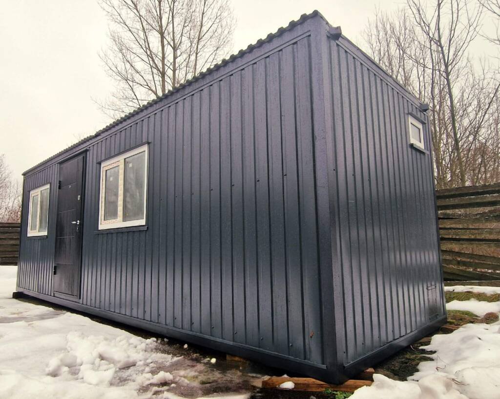 Pilnai paruoštas naudojimui Kaina€8712.00 su PVMIšorės matmenys:6.94×2.35×2.4 (ilgis x plotis x aukštis)Išorės apsiuvimas:Dengtas profiliuota cinkuota skarda ral 7016 antracit 0,45mm (stogas, sienos) Dugno apsauga, cinkuota profiliuota skarda 0.45mmApšiltinimas:100mm mineralinė vata (sienos,lubos, grindys)Grindys:18 mm osb plokštė, PVC danga ne plonesnė nei 2mmSienos:MDF panelėsLubos:PVC panelėsKita:2 balti varstomi langai 1100×1200 mm DurysEl. instaliacija:Šviestuvai, rozetės, jungikliaiSan. mazgai:Dušas, tualetas, kriauklė, boileris. Spintelė. Vandens ir nuotekų įvadai.Share